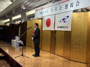 懇親会では今回、1名の社員が初参加となりましたが、社員・協力会社の皆様の前で緊張しながら挨拶をしました。